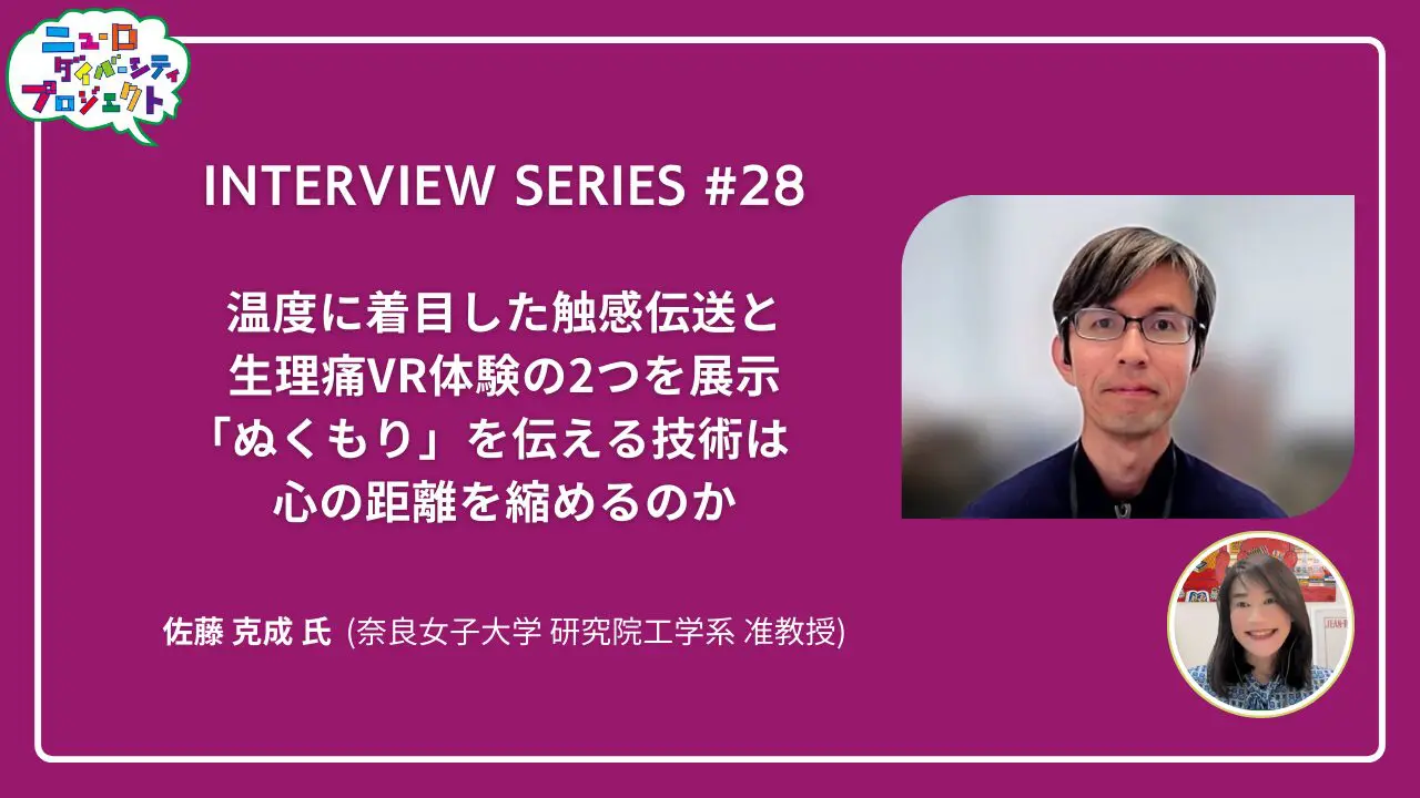 NEWS #ニューロダイバーシティプロジェクト ニューロダイバーシティプロジェクト インタビューシリーズ第28回 2026.1.16 国内外のニューロダイバーシティに関連する最先端の研究や活動に焦点を当て、インタビュー形式でお届けするシリーズ第28回は、「温度に着目した触感伝送と生理痛VR体験の2つを展示 『ぬくもり』を伝える技術は心の距離を縮めるのか」。 レポートを公開しましたので、 是非ご覧ください!
