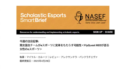 例えば、NASEFと一緒に国内の高校のeスポーツ部の部長宛てのニュースレターを作り、約550校にメールで一斉配信しました。開封率が5割近くに達していたのですが、その内容は世界におけるeスポーツを取り巻く状況について啓蒙するものです。eスポーツに関する認識や理解をさらに広める活動を一緒にしています。NASEFが配信している記事の中から毎週、江端ラボの学生が注目記事をピックアップし、日本語に翻訳して各高校のeスポーツ部長宛てに送っています。(▲写真7▲)