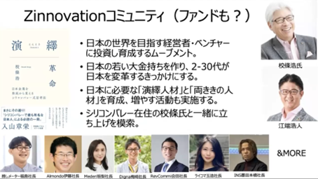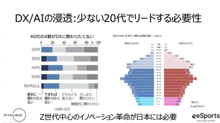 江端氏:「次にZinnovationの詳細について説明します。今、若い世代の人たちの知見をもっと世の中に取り入れることが求められていると感じています。そうした取り組みを総称してZinnovationと呼んでいます。