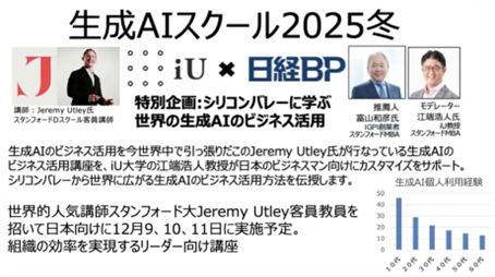 また、スタンフォード大学d.school客員教授でありイノベーション&AIスペシャリストのジェレミー・アトリー氏を招いて、日経BPと組んで生成AIセミナーを2025年12月に3日間の予定で実施します。(▲写真16▲)