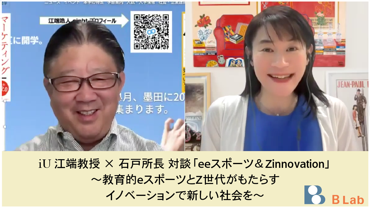 今回は、iU教授であり、江端浩人事務所代表/株式会社Almondo 事業顧問の江端 浩人氏(▲写真1▲)にお話を伺いました。教育的なeスポーツを意味するeeスポーツとZ世代がさまざまなイノベーションを起こすZinnovationに関するプロジェクト「eeスポーツ&Zinnovation」では、具体的にどのような取り組みが進められているのでしょうか。B Lab所長の石戸 奈々子(▲写真1▲)が、お聞きしました。